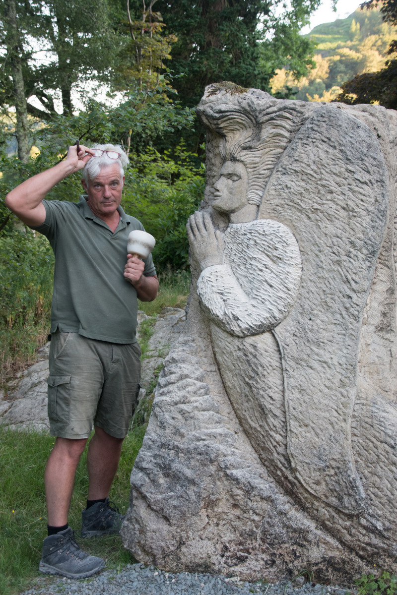 It would be tempting – but impossible – to list all Shawn’s works here. Fortunately his website http://www.lakestay.co.uk/shawnwilliamson/ guides fans to such gems as Lang Sandy, of Rowanburn in Scotland, which he created from Lazonby red sandstone for the Clan Armstrong Trust. It was unveiled by TV news anchor Fiona Armstrong, now Lady McGregor.
